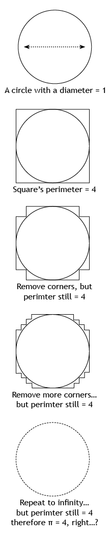 (Hint: just because the area of the polygon approaches that of the circle doesn't mean the perimter approaches pi.)